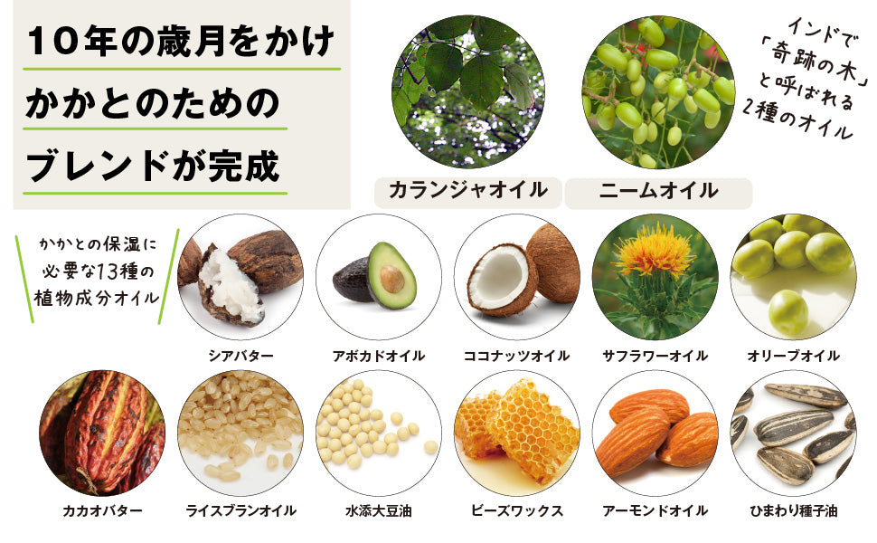 かかとのためのベストな処方を生み出すこと10年、徹底した肌に優しい植物原料選びにこだわり、